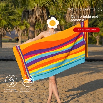 स्पॉट सप्लाई क्रॉस-बॉर्डर माइक्रोफाइबर बीच तौलिया मुद्रित स्ट्रिप्ड स्पोर्ट्स सोशोषक स्नान त्वरित गर्मी